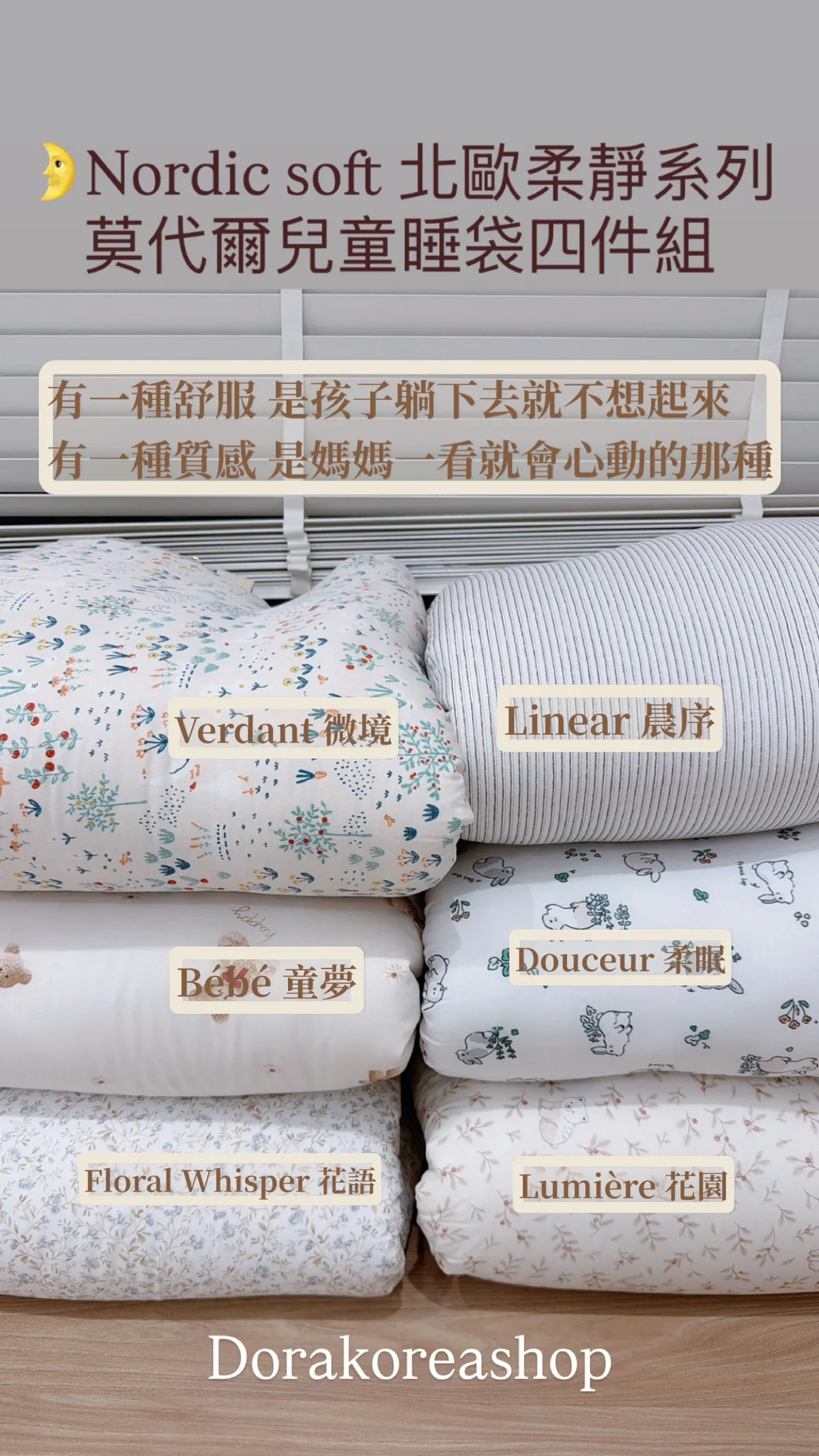 💁<朵拉家2.0睡袋 -🌙NORDIC SOFT北歐柔靜系列-莫代爾兒童睡袋四件組>