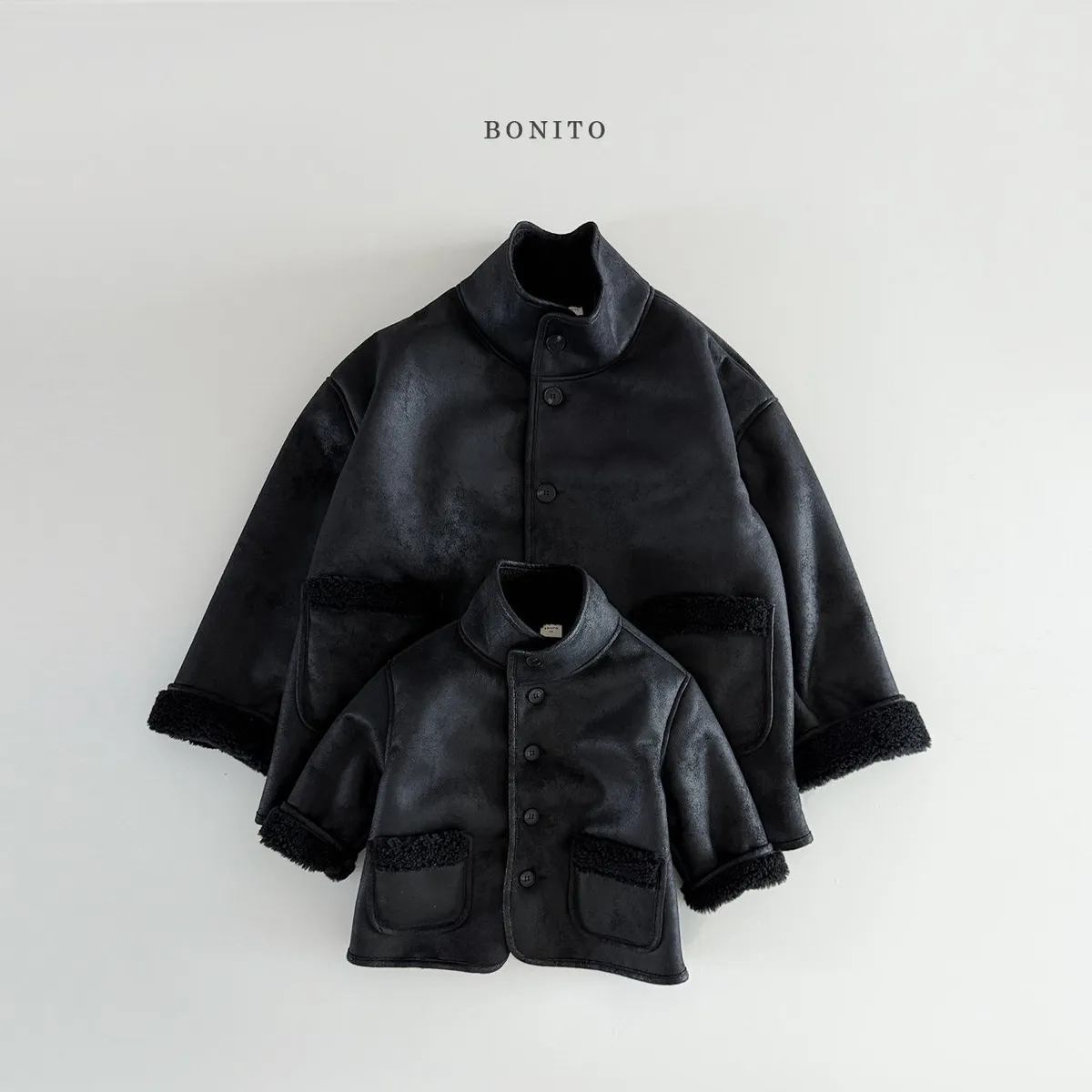2025.Bonito-兒子家-跟兒子一起穿的羊毛拼接皮大衣